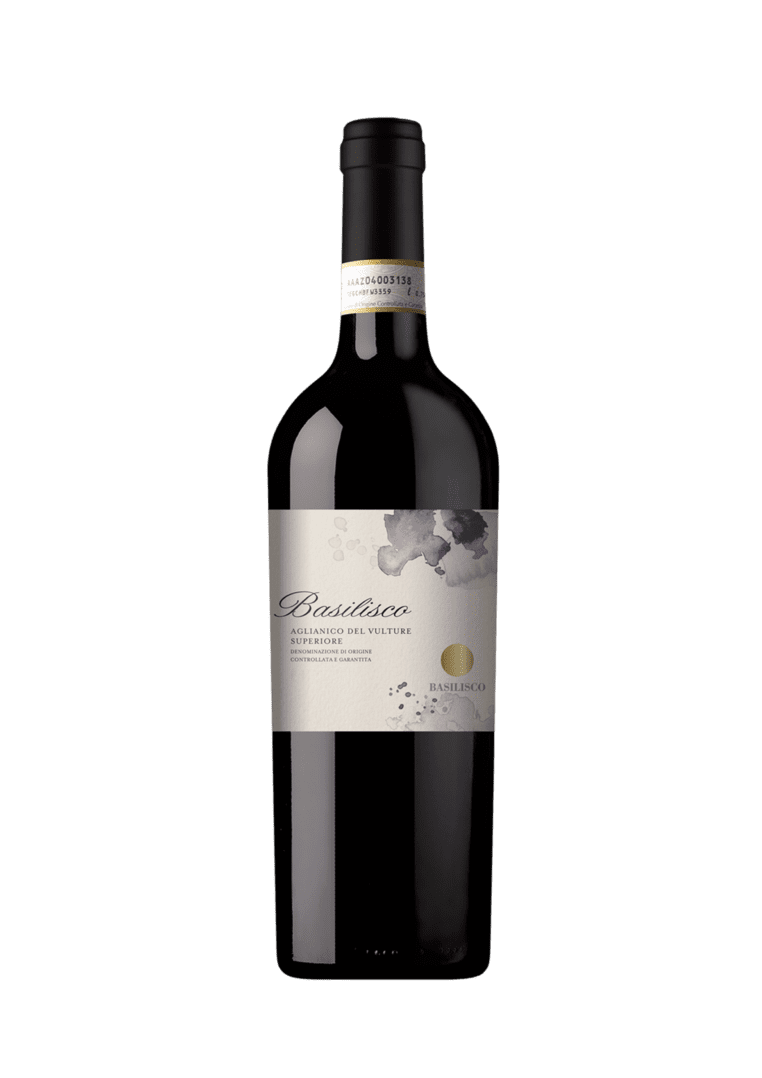 Dark glass wine bottle with cream label