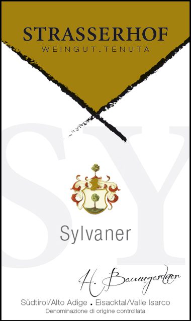 Strasserhof Sylvaner wine label with crest
